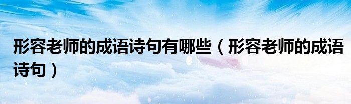 关于形容老师的成语诗句有哪些,形容老师的成语诗句这个很多人还不知道,今天菲菲来为大家解答以上的问题,现在让我们一起来看看吧!