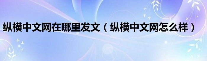 纵横中文网在哪里发文(纵横中文网怎么样)