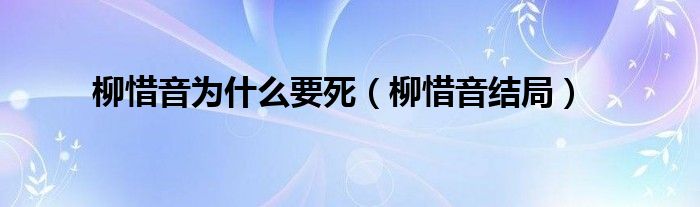 大家好,小晋来为大家解答以下问题,关于柳惜音为什么要死,柳惜音结局很多人还不知道,今天让我们一起来看看吧!