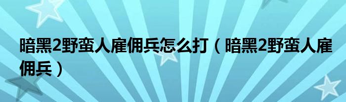 关于暗黑2野蛮人雇佣兵怎么打,暗黑2野蛮人雇佣兵这个很多人还不知道,今天菲菲来为大家解答以上的问题,现在让我们一起来看看吧!