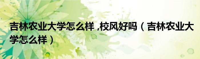吉林农业大学怎么样,校风好吗(吉林农业大学怎么样)