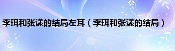 李珥和张漾的结局左耳(李珥和张漾的结局)