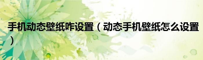 大家好,小晋来为大家解答以下问题,关于手机动态壁纸咋设置,动态手机壁纸怎么设置很多人还不知道,今天让我们一起来看看吧!