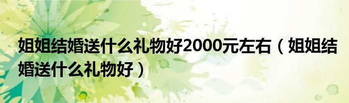 关于姐姐结婚送什么礼物好2000元左右,姐姐结婚送什么礼物好这个很多人还不知道,今天菲菲来为大家解答以上的问题,现在让我们一起来看看吧!