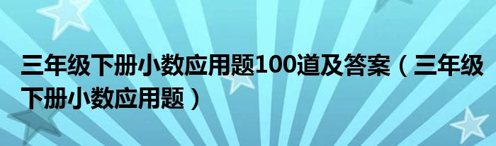 三年级下册小数应用题100道及答案(三年级下册小数应用题)