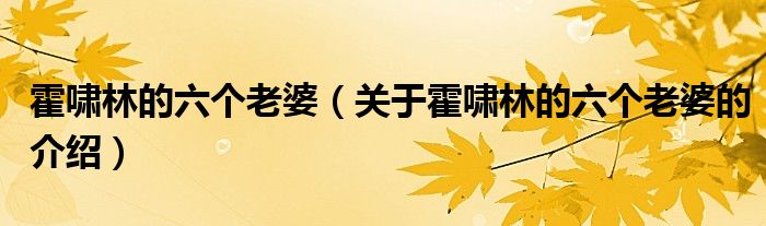 霍啸林的六个老婆(关于霍啸林的六个老婆的介绍)