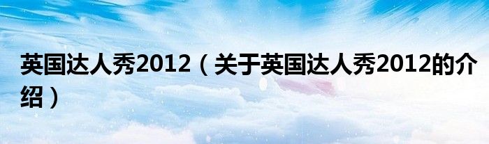 大家好,今天小乐来为大家解答以上的问题。英国达人秀2012,关于英国达人秀2012的介绍很多人还不知道,现在让我们一起来看看吧!