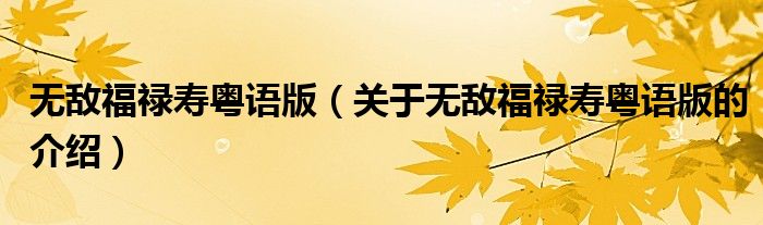 大家好,今天小乐来为大家解答以上的问题。无敌福禄寿粤语版,关于无敌福禄寿粤语版的介绍很多人还不知道,现在让我们一起来看看吧!
