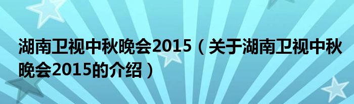 大家好,今天小乐来为大家解答以上的问题。湖南卫视中秋晚会2015,关于湖南卫视中秋晚会2015的介绍很多人还不知道,现在让我们一起来看看吧!