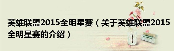 大家好,今天小乐来为大家解答以上的问题。英雄联盟2015全明星赛,关于英雄联盟2015全明星赛的介绍很多人还不知道,现在让我们一起来看看吧!