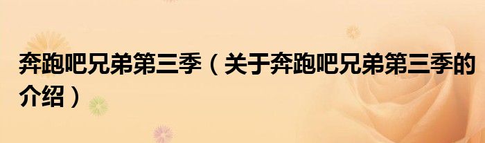 大家好,今天小乐来为大家解答以上的问题。奔跑吧兄弟第三季,关于奔跑吧兄弟第三季的介绍很多人还不知道,现在让我们一起来看看吧!