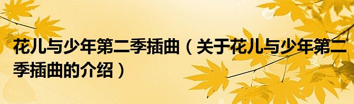 大家好,今天小乐来为大家解答以上的问题。花儿与少年第二季插曲,关于花儿与少年第二季插曲的介绍很多人还不知道,现在让我们一起来看看吧!