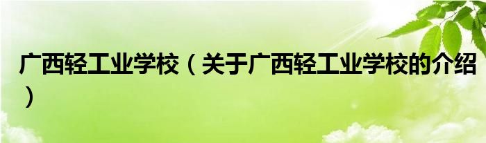 大家好,今天小乐来为大家解答以上的问题。广西轻工业学校,关于广西轻工业学校的介绍很多人还不知道,现在让我们一起来看看吧!