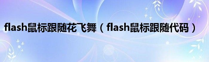 flash鼠标跟随花飞舞,flash鼠标跟随代码很多人还不知道,乐乐来为大家解答以上问题,现在让我们一起来看看吧!