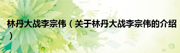 大家好,今天小乐来为大家解答以上的问题。林丹大战李宗伟,关于林丹大战李宗伟的介绍很多人还不知道,现在让我们一起来看看吧!
