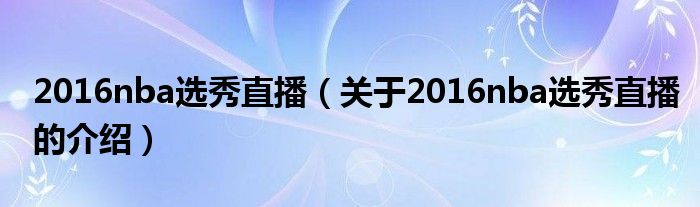 2016nba选秀直播(关于2016nba选秀直播的介绍)