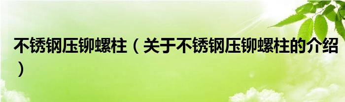 大家好,今天小乐来为大家解答以上的问题。不锈钢压铆螺柱,关于不锈钢压铆螺柱的介绍很多人还不知道,现在让我们一起来看看吧!