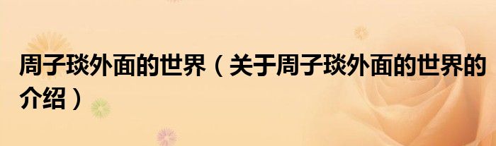 大家好,今天小乐来为大家解答以上的问题。周子琰外面的世界,关于周子琰外面的世界的介绍很多人还不知道,现在让我们一起来看看吧!