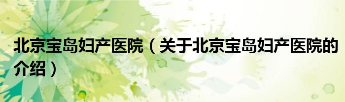 大家好,小都来为大家解答以上的问题。北京宝岛妇产医院,关于北京宝岛妇产医院的介绍很多人还不知道,现在让我们一起来看看吧!