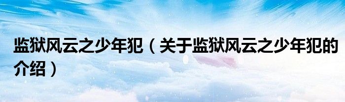 监狱风云之少年犯(关于监狱风云之少年犯的介绍)