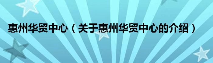 惠州华贸中心(关于惠州华贸中心的介绍)