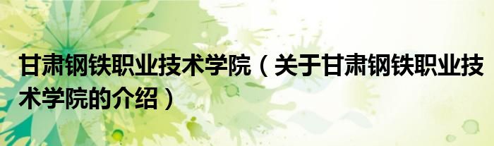 甘肃钢铁职业技术学院(关于甘肃钢铁职业技术学院的介绍)