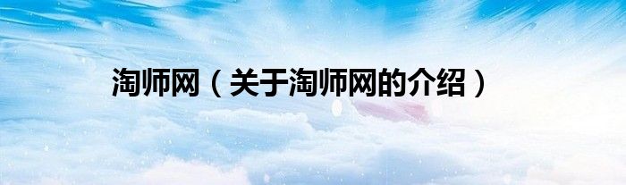大家好,小都来为大家解答以上的问题。淘师网,关于淘师网的介绍很多人还不知道,现在让我们一起来看看吧!