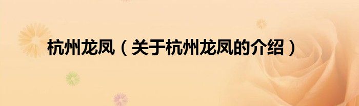 杭州龙凤(关于杭州龙凤的介绍)