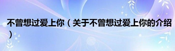 不曾想过爱上你(关于不曾想过爱上你的介绍)