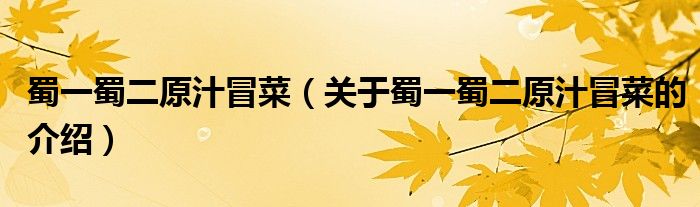 蜀一蜀二原汁冒菜(关于蜀一蜀二原汁冒菜的介绍)