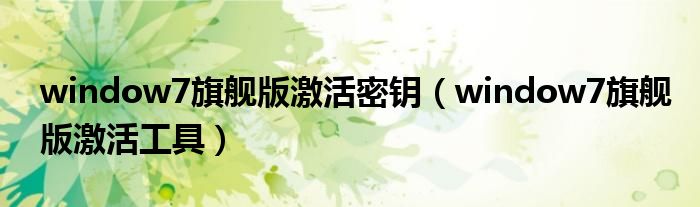 window7旗舰版激活密钥(window7旗舰版激活工具)