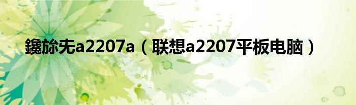 大家好,雨雨来为大家解答以上问题,鑱旀兂a2207a,联想a2207平板电脑很多人还不知道,现在让我们一起来看看吧!
