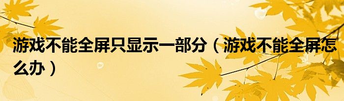 大家好,雨雨来为大家解答以上问题,游戏不能全屏只显示一部分,游戏不能全屏怎么办很多人还不知道,现在让我们一起来看看吧!