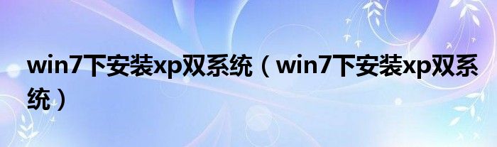 大家好,雨雨来为大家解答以上问题,win7下安装xp双系统,win7下安装xp双系统很多人还不知道,现在让我们一起来看看吧!