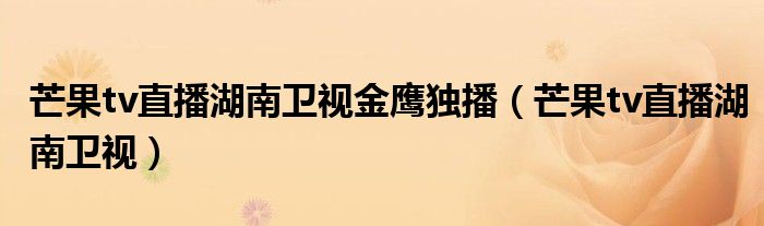 大家好,雨雨来为大家解答以上问题,芒果tv直播湖南卫视金鹰独播,芒果tv直播湖南卫视很多人还不知道,现在让我们一起来看看吧!