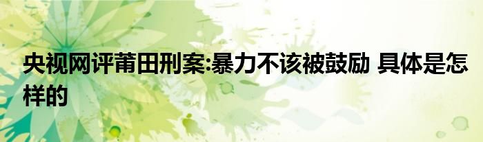 大家好.我是互联百科的羽儿,现在为大家解决以上央视网评莆田刑案:暴力不该被鼓励 具体是怎样的的问题.