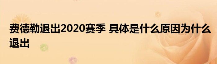 大家好.我是互联百科的羽儿,现在为大家解决以上费德勒退出2020赛季 具体是什么原因为什么退出的问题.
