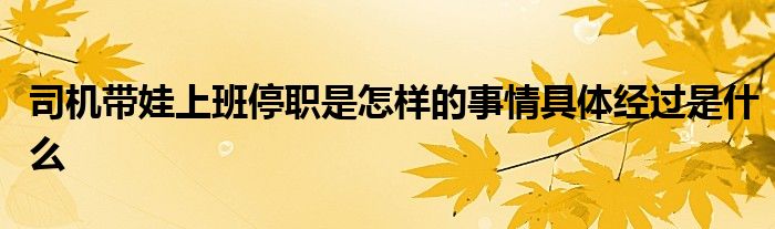 1、司机带娃上班停职是怎么回事?事情具体经过是什么?随深港在线小编一起来了解一下。