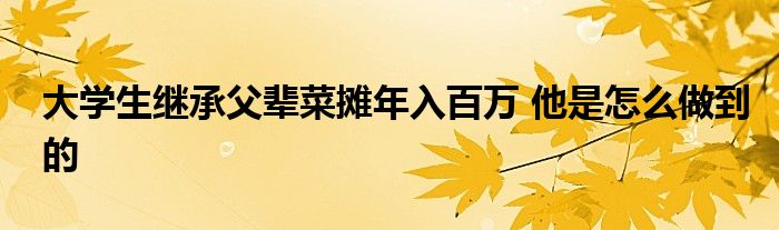 1、大学生继承父辈菜摊年入百万