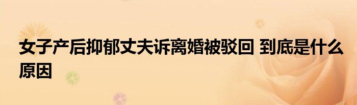 大家好.我是互联百科的羽儿,现在为大家解决以上女子产后抑郁丈夫诉离婚被驳回 到底是什么原因的问题.