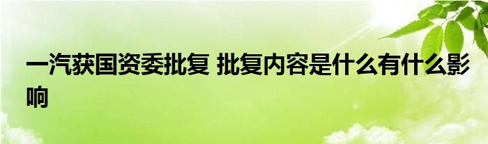 大家好.我是互联百科的羽儿,现在为大家解决以上一汽获国资委批复 批复内容是什么有什么影响的问题.