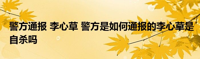 大家好.我是互联百科的羽儿,现在为大家解决以上警方通报 李心草 警方是如何通报的李心草是自杀吗的问题.