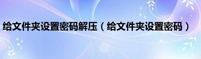 给文件夹设置密码解压(给文件夹设置密码)