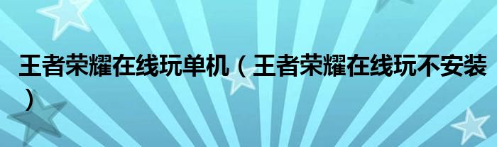 王者荣耀在线玩单机(王者荣耀在线玩不安装)