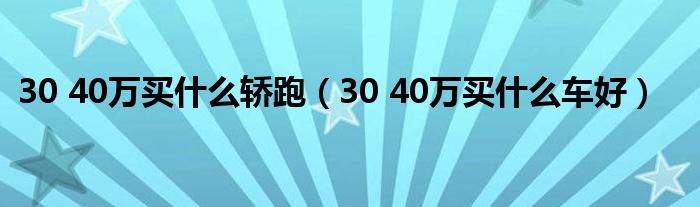 关于30 40万买什么轿跑,30 40万买什么车好这个很多人还不知道,今天菲菲来为大家解答以上的问题,现在让我们一起来看看吧!