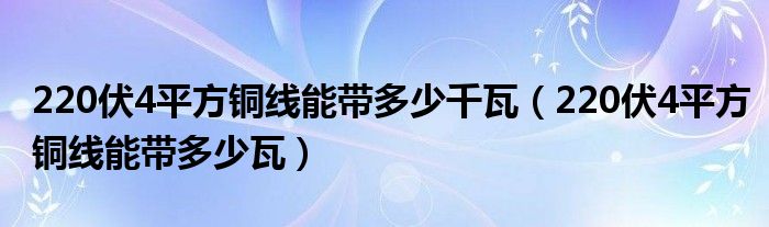 220伏4平方铜线能带多少千瓦(220伏4平方铜线能带多少瓦)