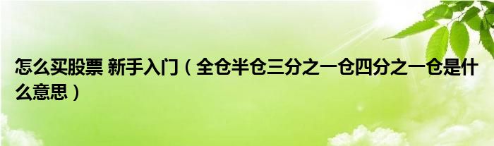 关于怎么买股票 新手入门,全仓半仓三分之一仓四分之一仓是什么意思这个很多人还不知道,今天菲菲来为大家解答以上的问题,现在让我们一起来看看吧!