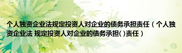 个人独资企业法规定投资人对企业的债务承担责任(个人独资企业法 规定投资人对企业的债务承担( )责任)