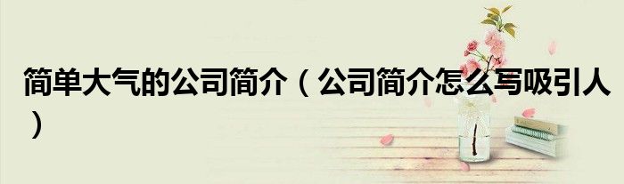 关于简单大气的公司简介,公司简介怎么写吸引人这个很多人还不知道,今天菲菲来为大家解答以上的问题,现在让我们一起来看看吧!