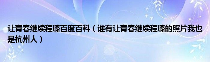 关于让青春继续程璐百度百科,谁有让青春继续程璐的照片我也是杭州人这个很多人还不知道,今天菲菲来为大家解答以上的问题,现在让我们一起来看看吧!